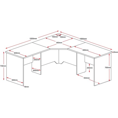 Rapid Worker 3 Piece Corner Workstation 1500Wx1500Wx600D Natural White and Ironstone