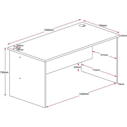 FNX RAPID WORKER OFFICE DESK 1500 W x 750 D x 730mm H Natural Oak/Ironstone