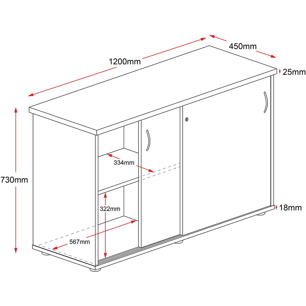 FNX RAPID WORKER CREDENZA 1200L x 450W x 730H Sliding Door White & Ironstone