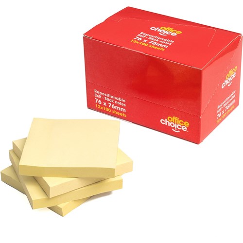OFFICE CHOICE STICKY NOTES 100 Sheets Yellow 76 x 76mm Pack Of 12