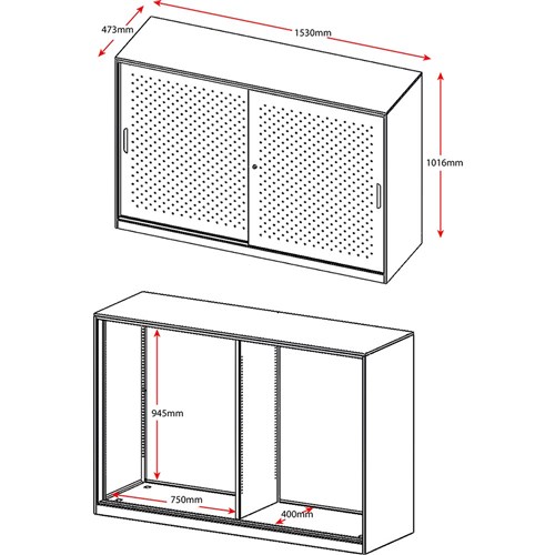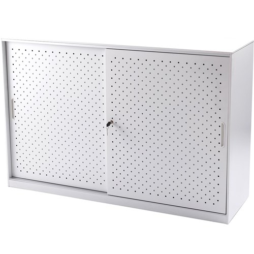 • FNX GO PERFORATED CREDENZA 1530W x 473D x 1016mmH Sliding Door White Lockable