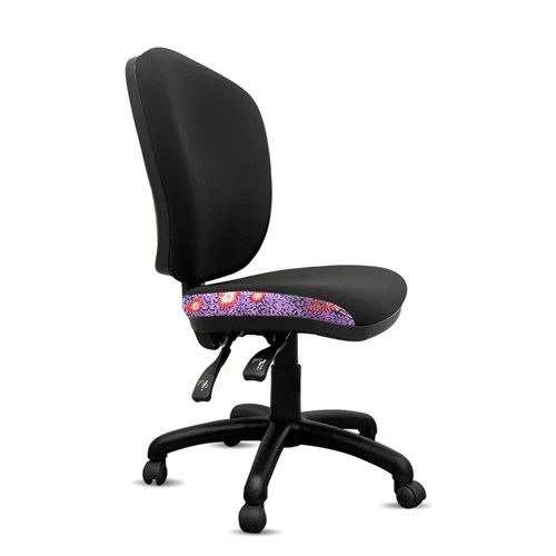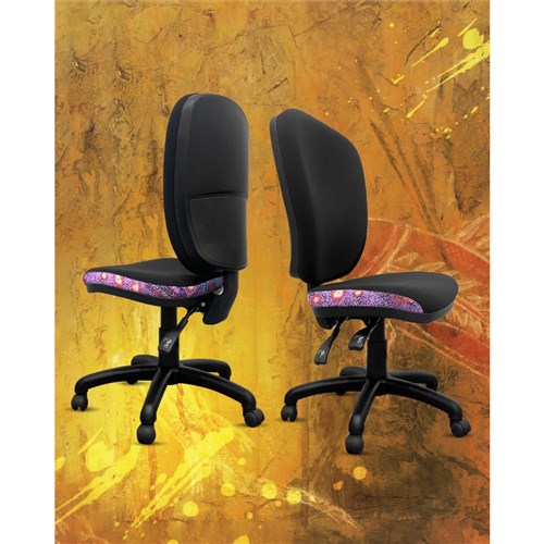 • A unique commercial fabrics designed by Andrea Adamson (Indigenous Artist) combined with K2 Black Fabric to upholster the chair.