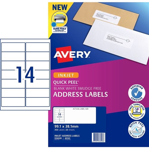 AVERY J8163-25 MAILING LABELS Inkjet 14/Sht 99.1x38mm 25Shts