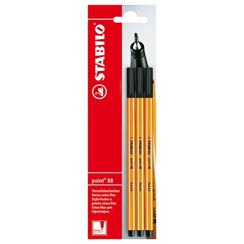 STABILO POINT 88 FINELINER Black Pack/3-R#