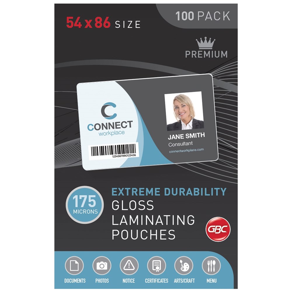 GBC LAMINATING POUCH 54X86MM 175 Micron Pack 100