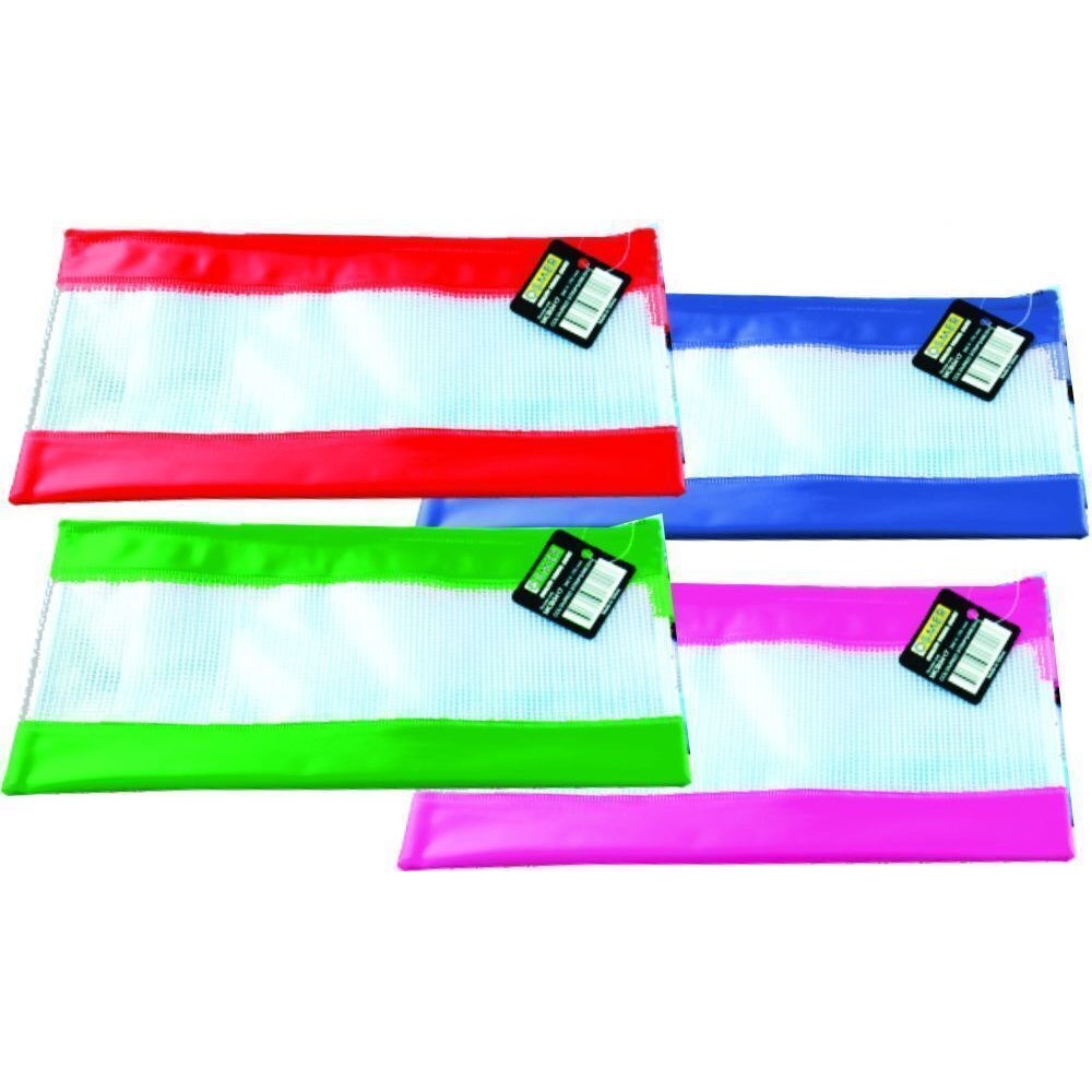 OSMER PENCIL CASE CLEAR MESH Coloured Bands 34x17cm Assort