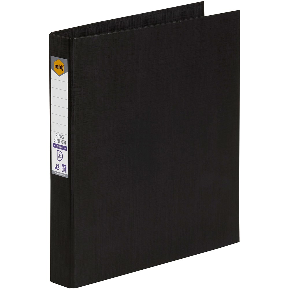 MARBIG PE LINEN BINDERS A4 2D Ring 25mm Black