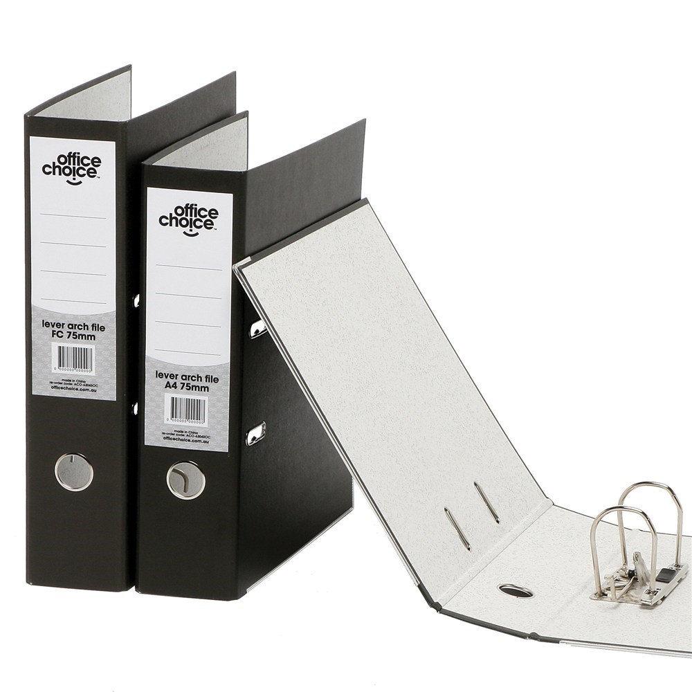 MARBIG LEVER ARCH FILES Foolscap Paper Spine Black