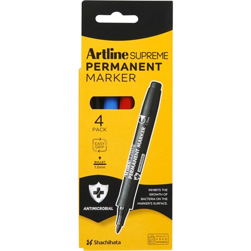 • The Artline Supreme Antimicrobial Range utilises plastic that incorporates a silver-based antimicrobial substance which inhibits the growth of bacteria on the marker?s surface.