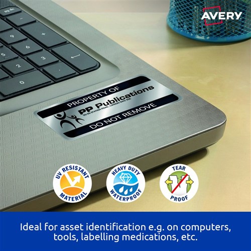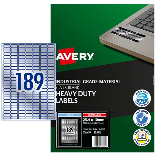 AVERY HEAVY DUTY LASER LABELS Silver L6008 25.4x10mm