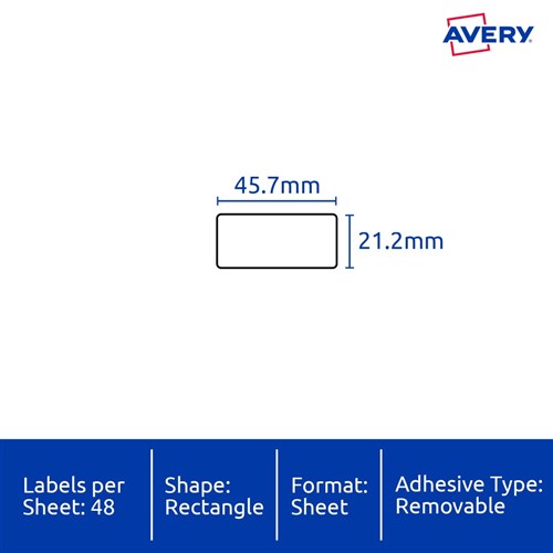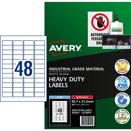 Avery H/Duty Removable Laser Labels White L4778 48 per Sht 45.7 x 21.2mm 48UP 960 Labels