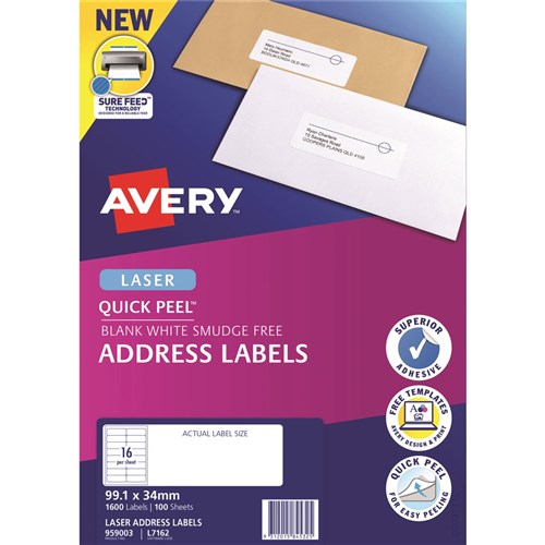 AVERY L7162 MAILING LABELS Laser 16/Sht 99.1x34mm 100Shts