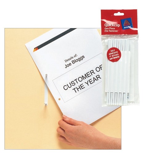 AVERY QUICKCLIP FILE FASTENERS Self Adhesive White Pk50