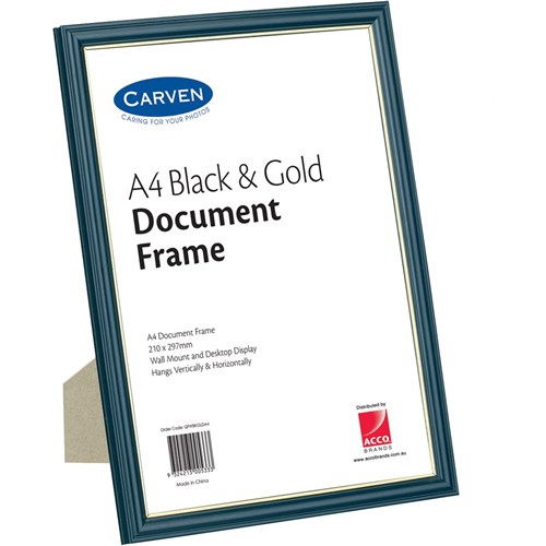 CARVEN CERTIFICATE FRAME A4 Desk/ Wall Mount Black/Gold