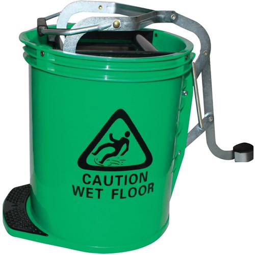 CLEANLINK MOP BUCKET GREEN Heavy Duty Plastic 16L With Metal Wringer