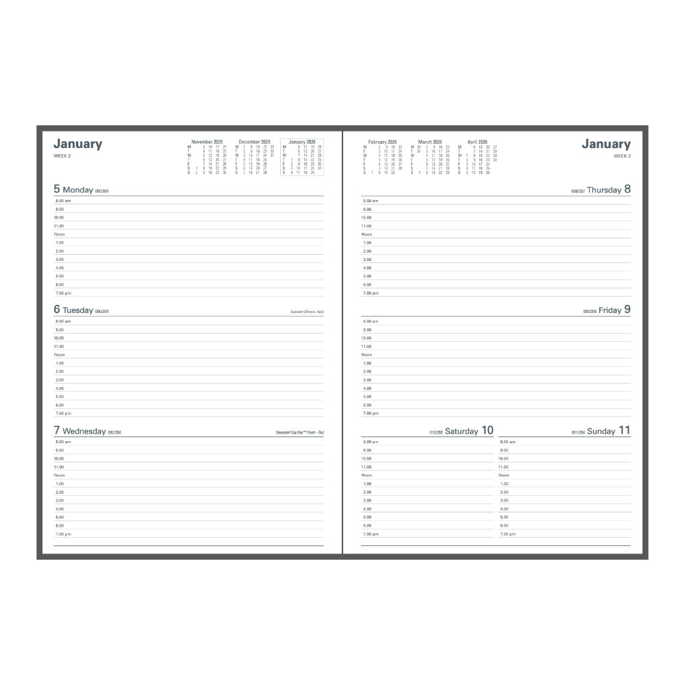 • Smartly bound in durable covers with a ribbon marker and contains pages of useful information.