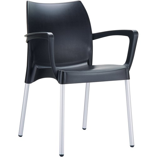 DOLCE HOSPITALITY DINING CHAIR With Arms Indoor Outdoor Use Stackable Black