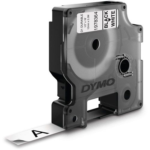 DYMO D1 DURABLE LABELLING TAPE Cassetes Black on White 12mmx5.5m Durable