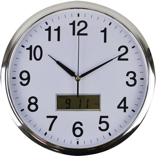 ITLPLAST WALL CLOCK Inset LCD Date Month 36cm Round Chrome F