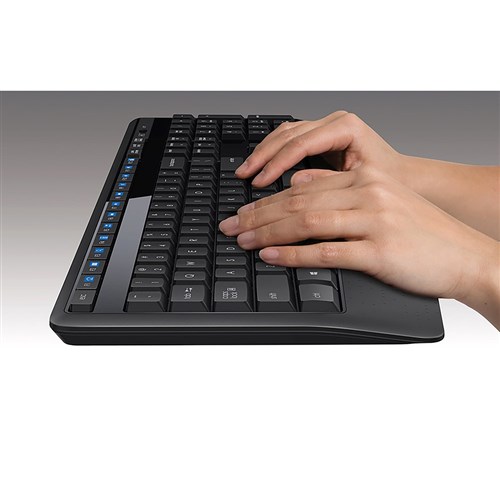 • The MK345 is a wireless full-sized combo with improved comfort and extra-long battery life that lasts for months.