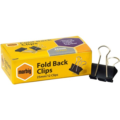 MARBIG FOLDBACK CLIPS 25mm Box12