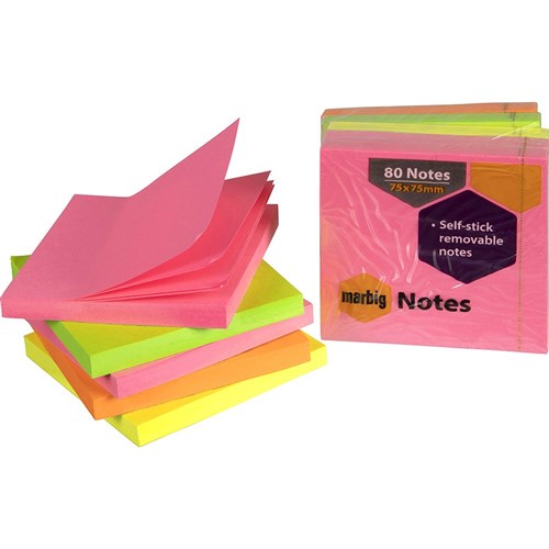 MARBIG BRILLIANT NOTES Neon Coloured, 75x75mm, Pk5