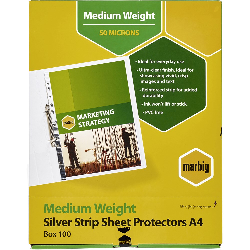 MARBIG SHEET PROTECTORS A4 Silver Strip Copysafe PK100