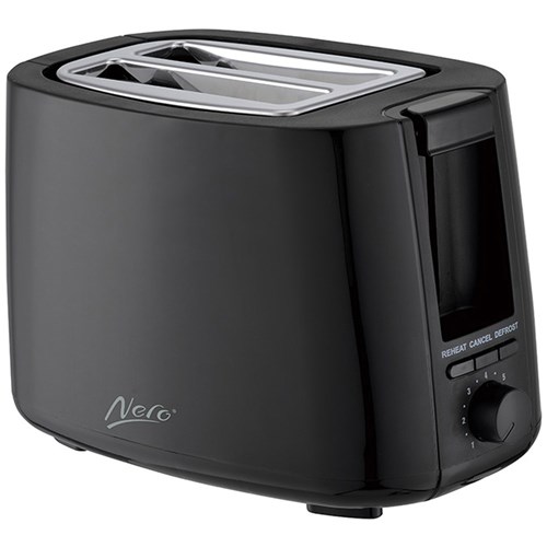 NERO 2 SLICE TOASTER BLACK 7 setting browning dial Reheat, defrost buttons