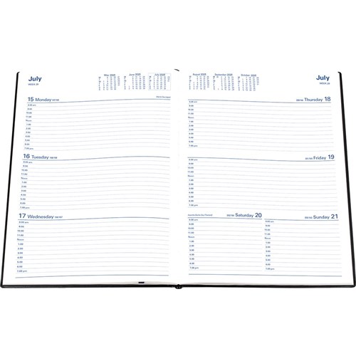 • Stylish hardcover casebound diary with blue leather grain cover.