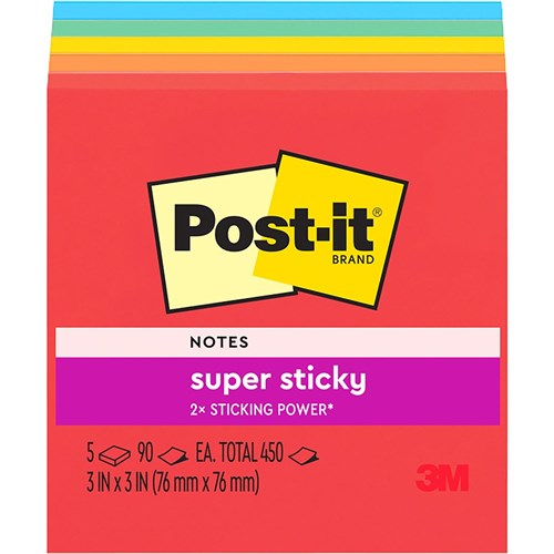 POST-IT 654-5SSAN SUPER STICKY Electric Glow 76x76mm Asst Pk5 XP001007143