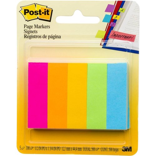 POST-IT PAGE MARKERS 670-5AN Neon, 500 Asstd, 13x44mm