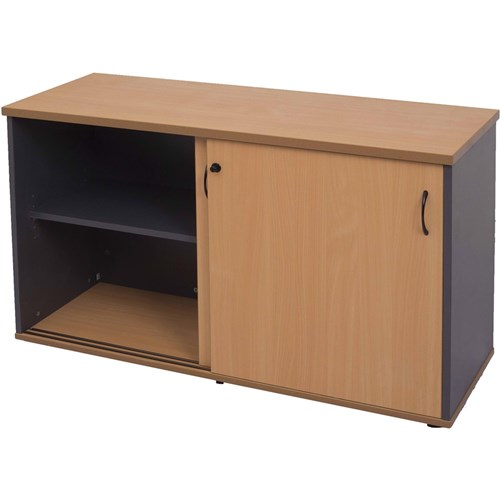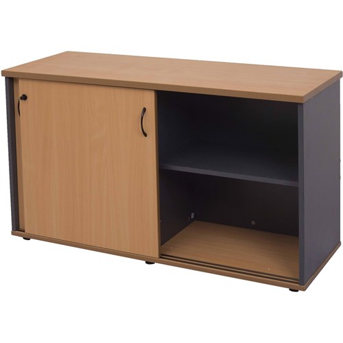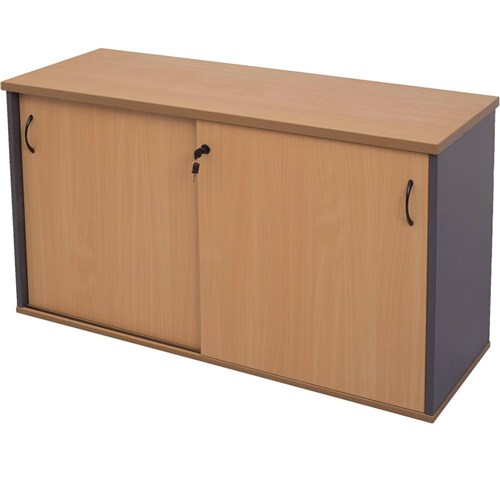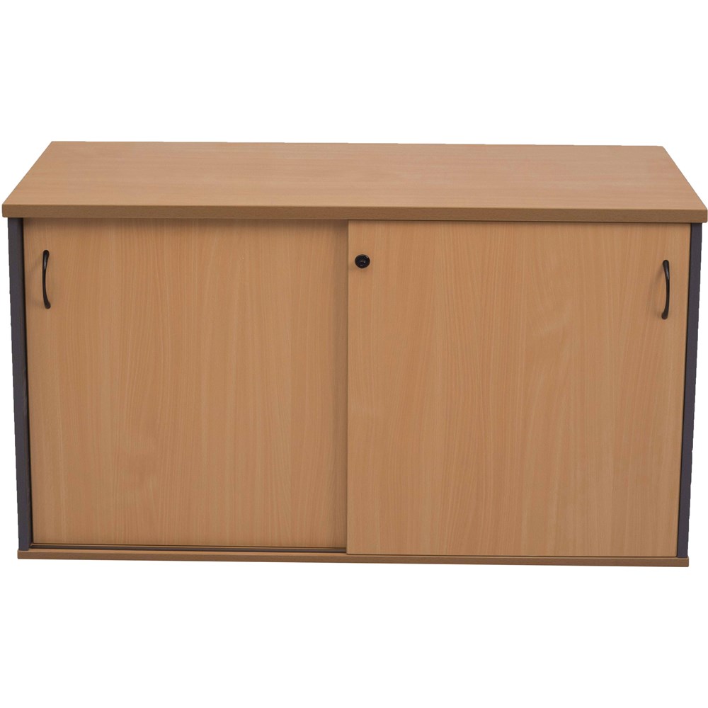 FNX RAPID WORKER CREDENZA 1200L x 450W x 730H Sliding Door Beech & Ironstone