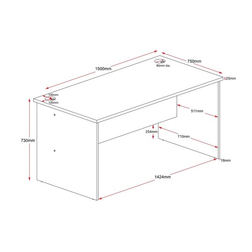FNX RAPID WORKER OFFICE DESK 1500W x 750D x 730mmH Cherry and Ironstone