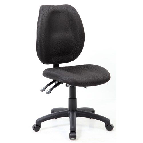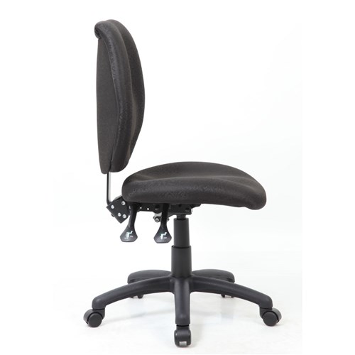 • Ratchet adjustable back. Back tilt adjustment. Lockable seat tilt.