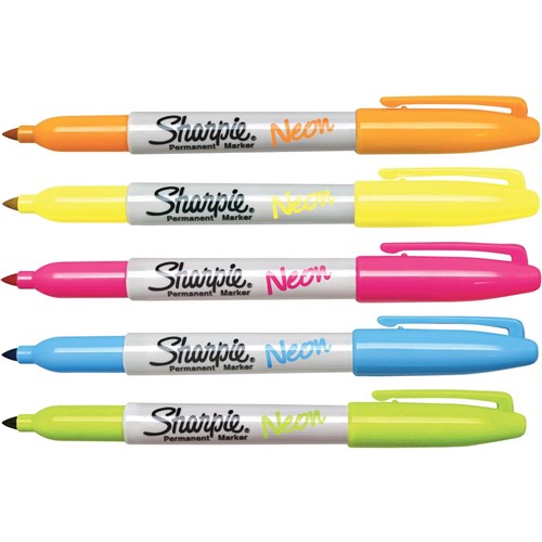 SHARPIE NEON PERMANENT MARKERS 1.00mm Fine Fluro Asst Pk5