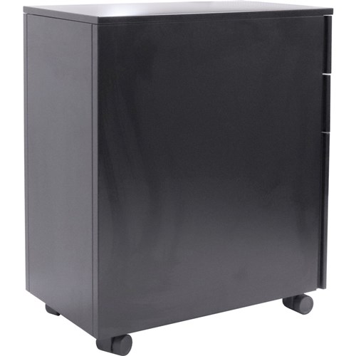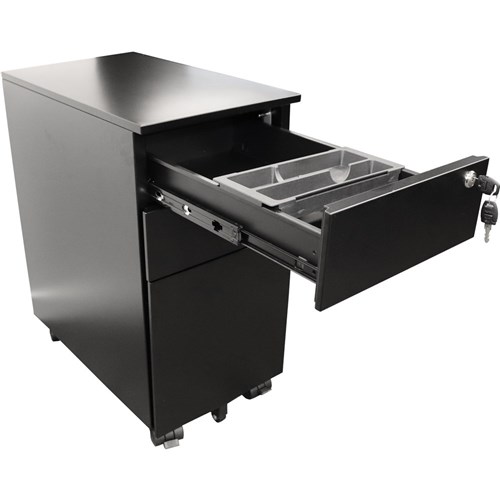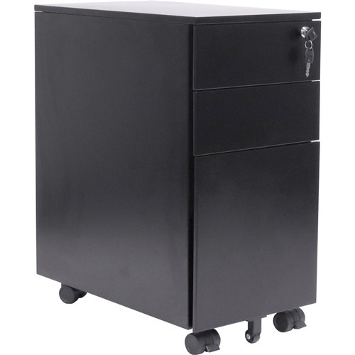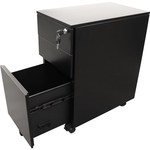 SLIMLINE STEEL MOBILE PEDESTAL 2 Drawer 1 Filing Drawer Lock 610Hx300Wx472mmD Black