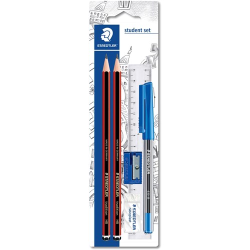 STAEDTLER STUDENT SET Pen Pencils Sharpener Eraser Rule