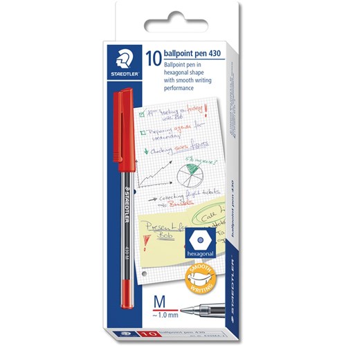 STAEDTLER STICK 430 BALL PEN Medium Red Box10