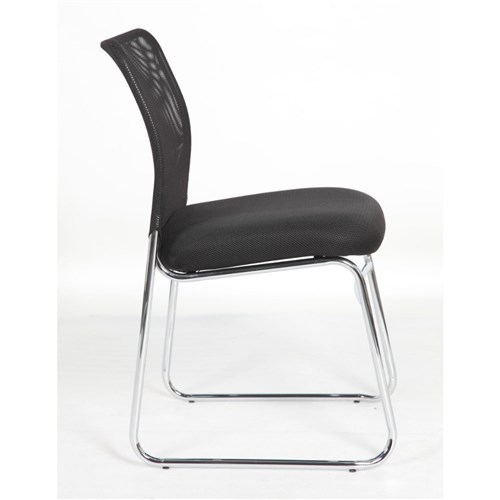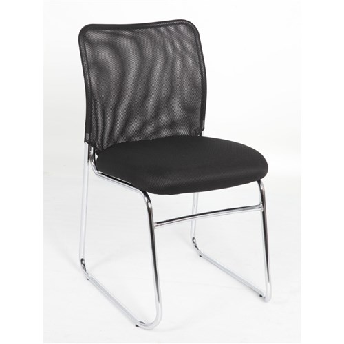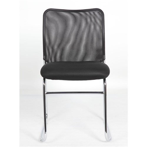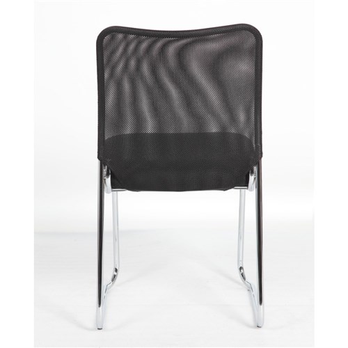STUDIO MESH BACK VISITORS Chair With Chrome Sled Base Black Fabric