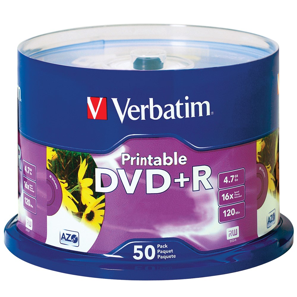 VERBATIM RECORDABLE DVD+R 4.7GB 16x Printable White Pk50