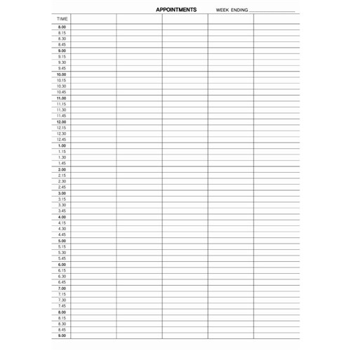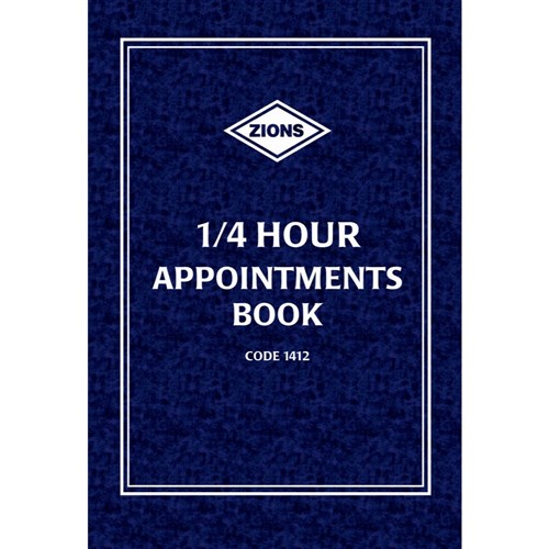 ZIONS 1412 APPOINTMENT BOOK A4 1/4Hour Appointments 297X210mm