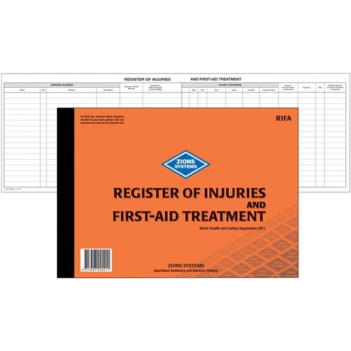 ZIONS RI REG OF INJURIES Register Of Injuries & First Aid Treatment
